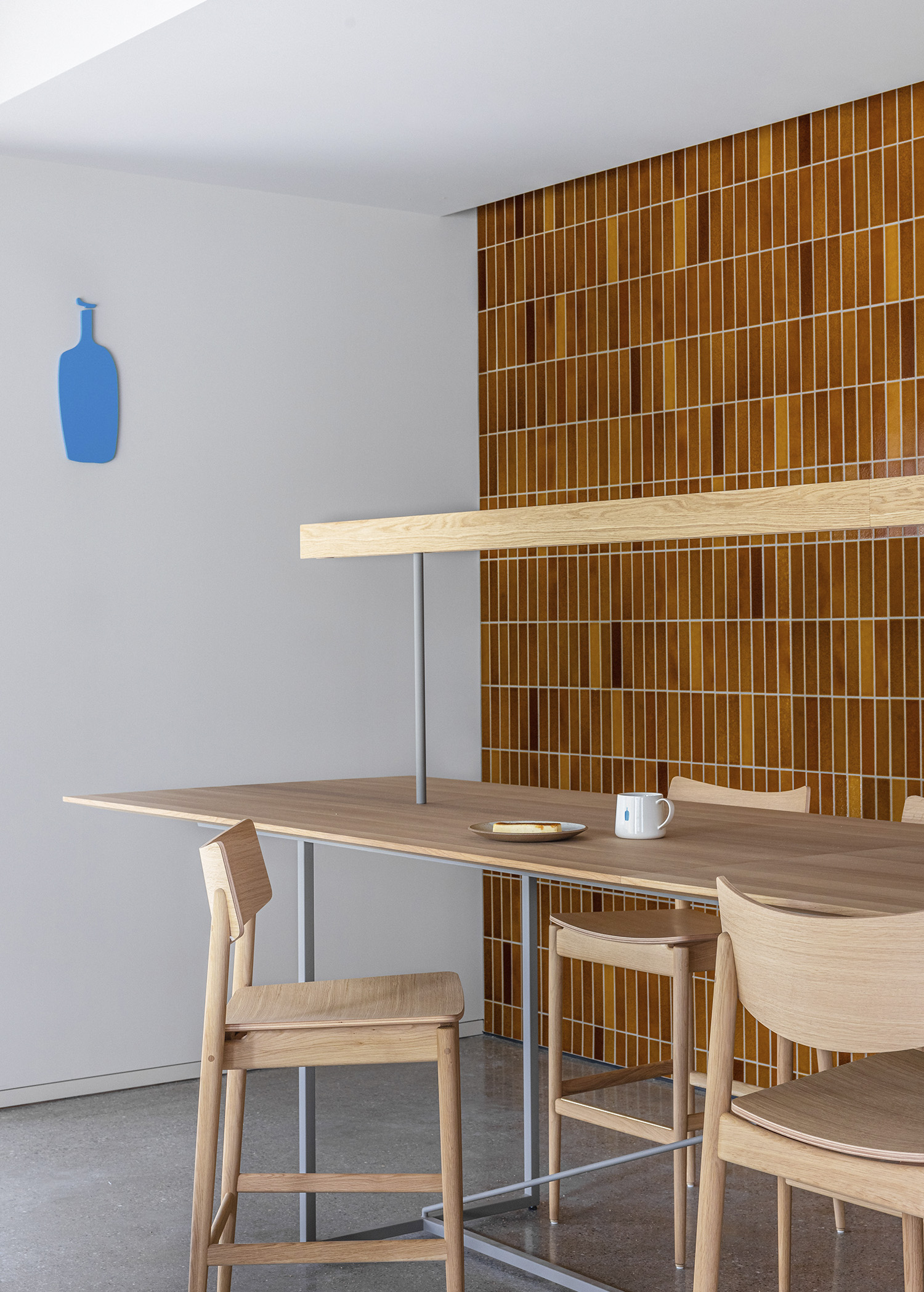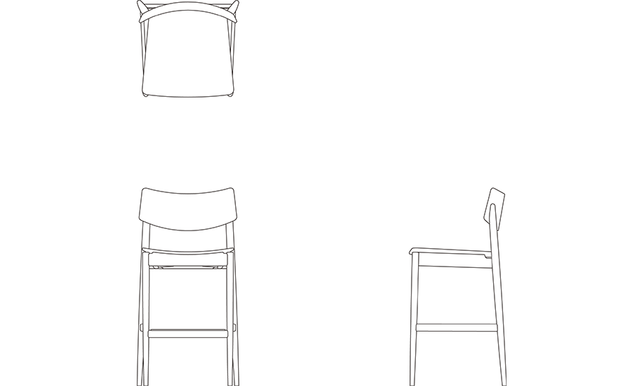 This counter chair was designed during the planning for Blue Bottle Coffee Shibuya Cafe to match the dining chair. While it is a counter chair, consideration was given to the large-sized backrest, allowing you to sit in a relaxed manner for extended periods, and to making it comfortable to sit on.
