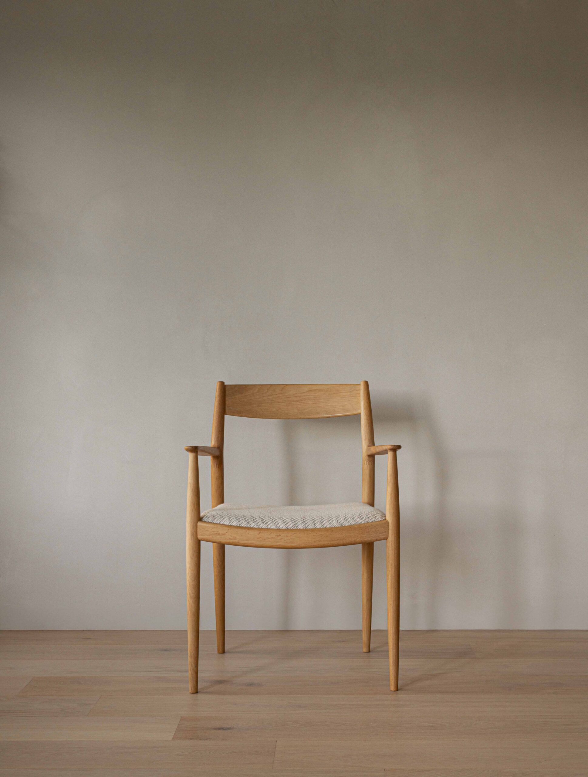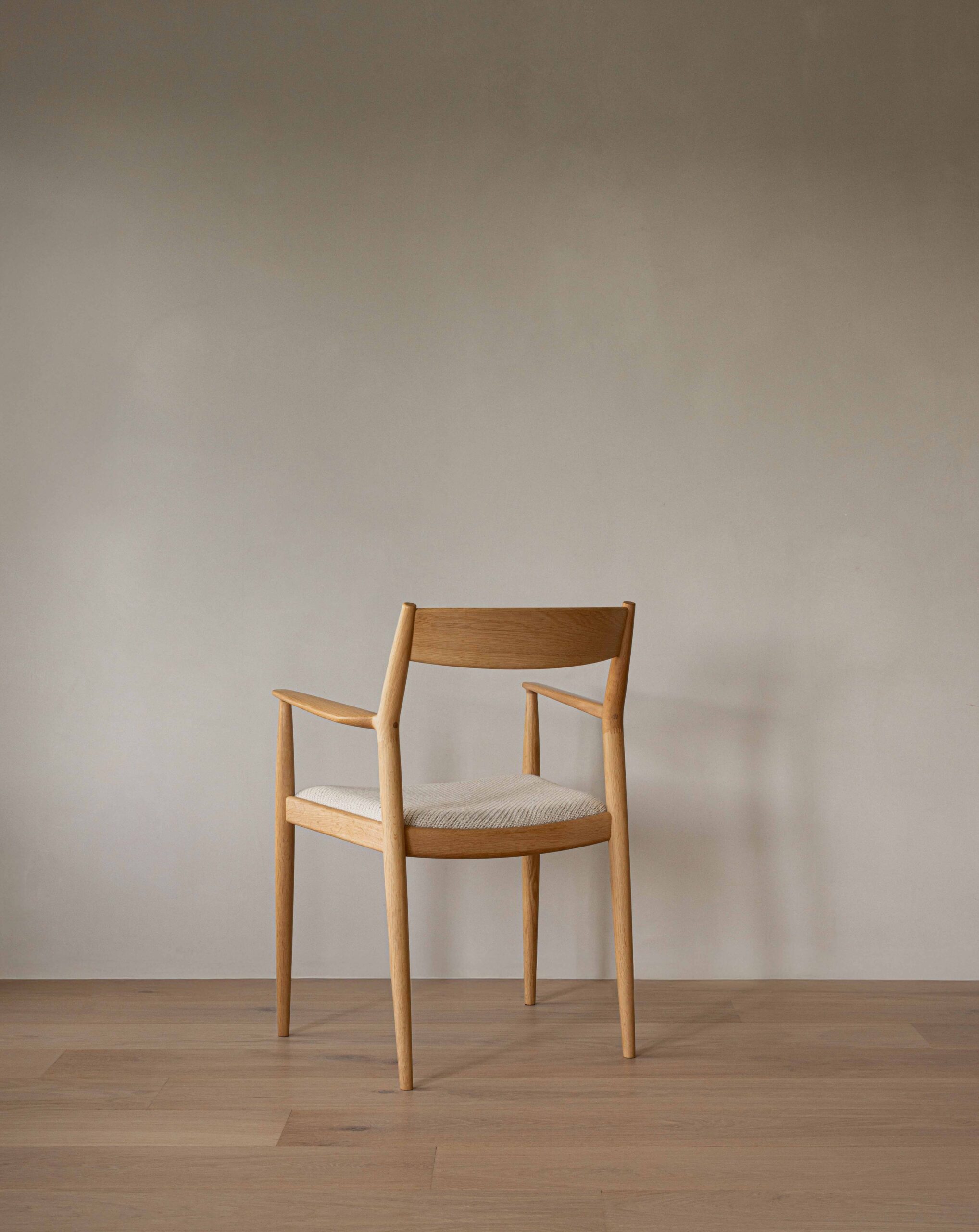 The dining chair was born out of the exploration around Karimoku’s many factories, workshopping on sight with the craftsmen, using existing parts and updating others, until a hybrid between the Japanese and Scandinavian design aesthetic emerged. The result is a classic chair, simple in its design and composition, but with a warm and welcoming feel to it.