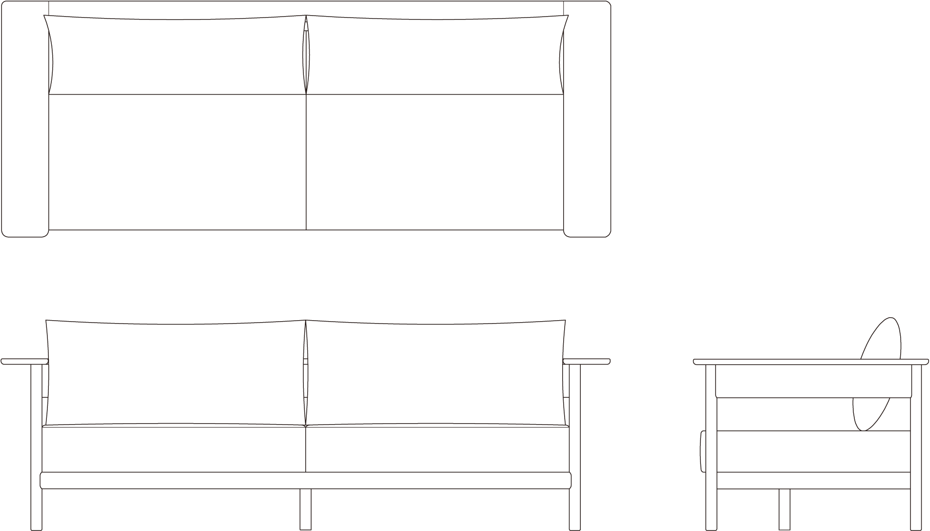 The rhythms in the sofa carries references to traditional Japanese architecture methods and democratic Danish furniture design from the 50’s. All elements are visible and proudly displayed through an honest design language. The armrest continues along the backrest of the sofa, creating a shelf-like element that increases the functionality of the furniture piece, making it suitable for the small home.