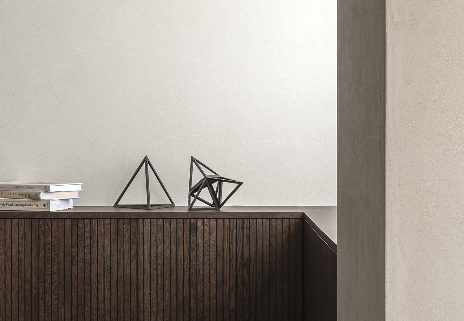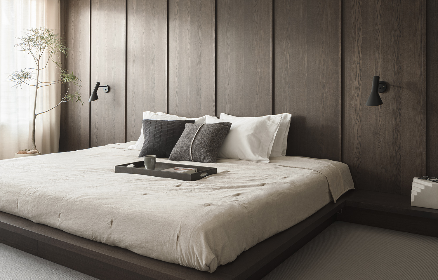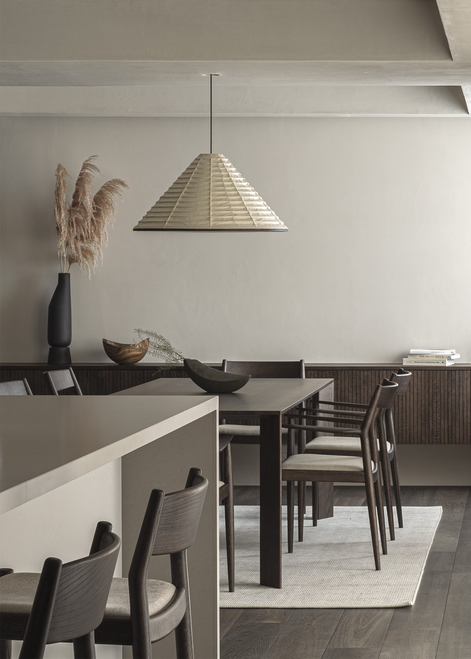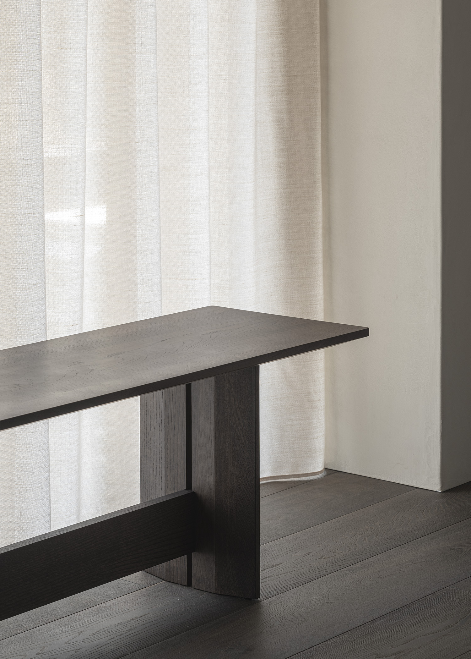 このインテリアデザインは、芦沢啓治建築設計事務所とノーム・アーキテクツのコラボレーションにより完成し、これまでのケースと同じく、日本と北欧のデザインの原則や美意識を融合しています。天然素材や落ち着いた色調を使用するという共通の理念がこのプロジェクトの基礎にあり、触り心地のよさや、ソフトミニマルで時代を超えた品質に重きを置いている点が特徴です。