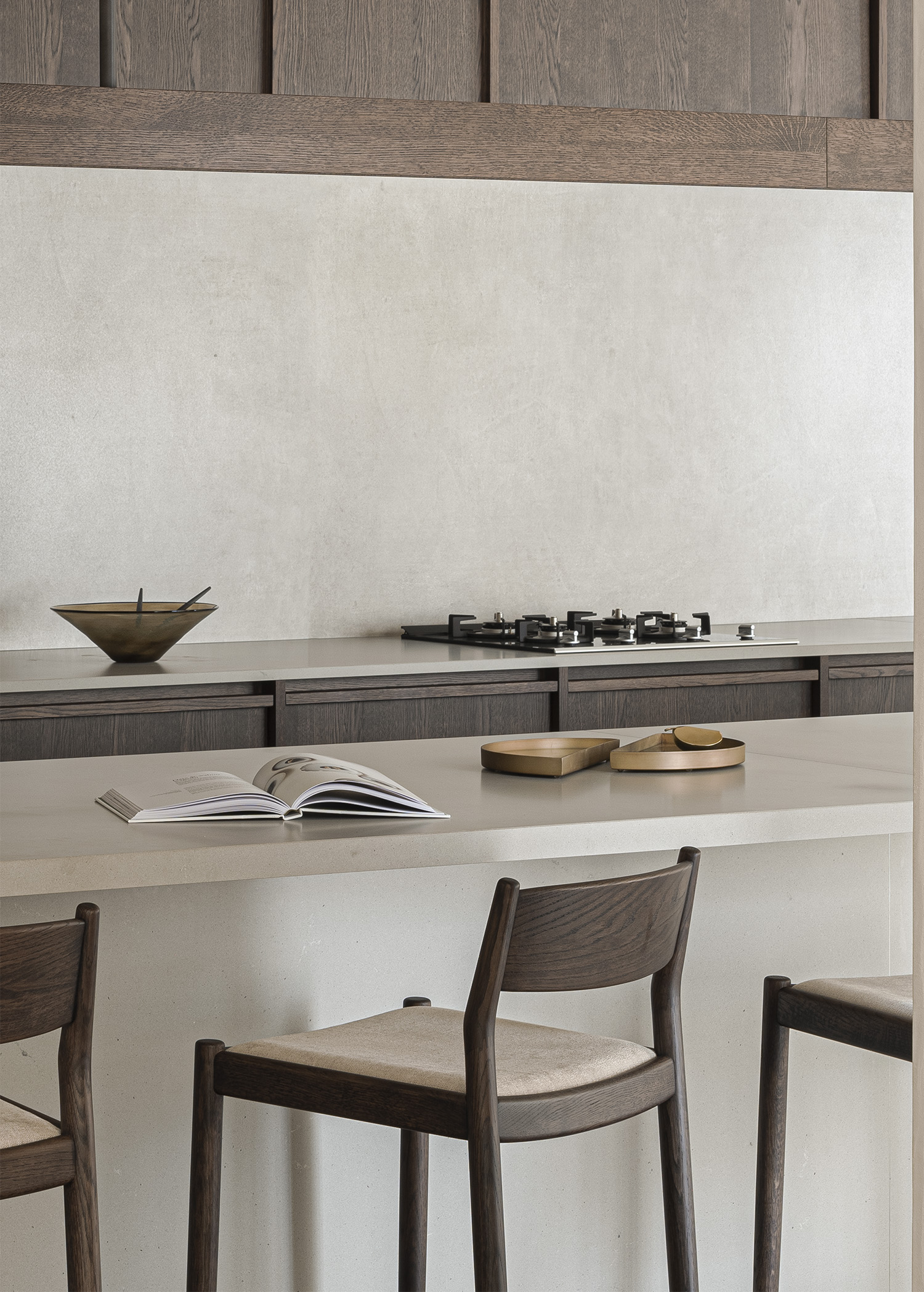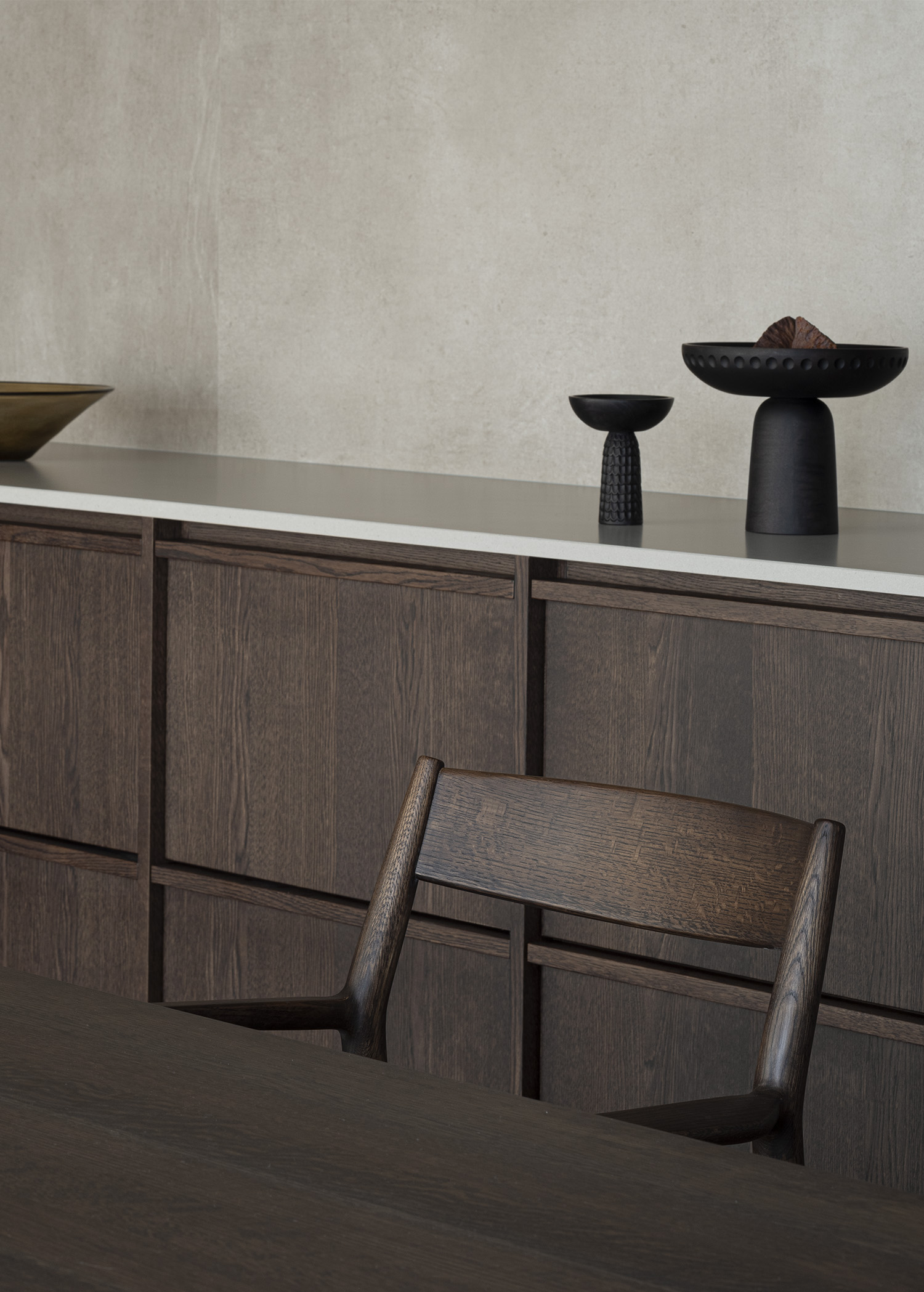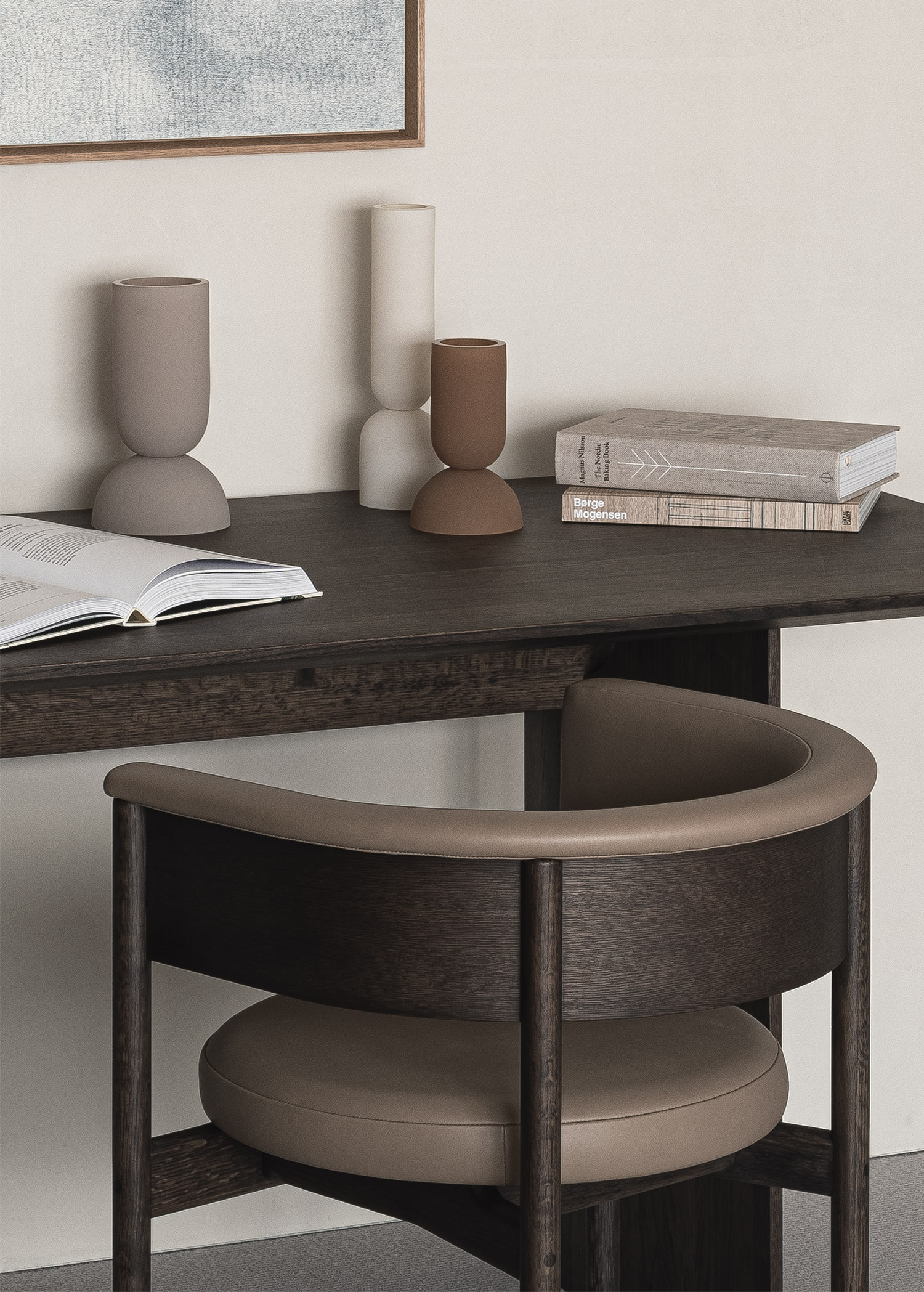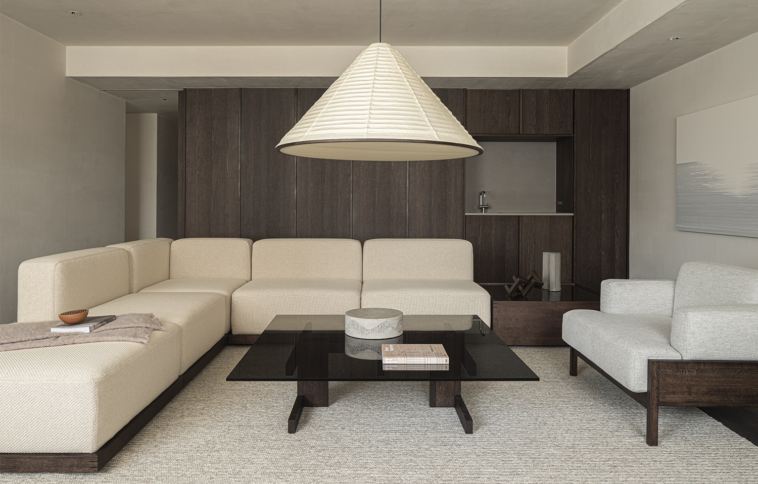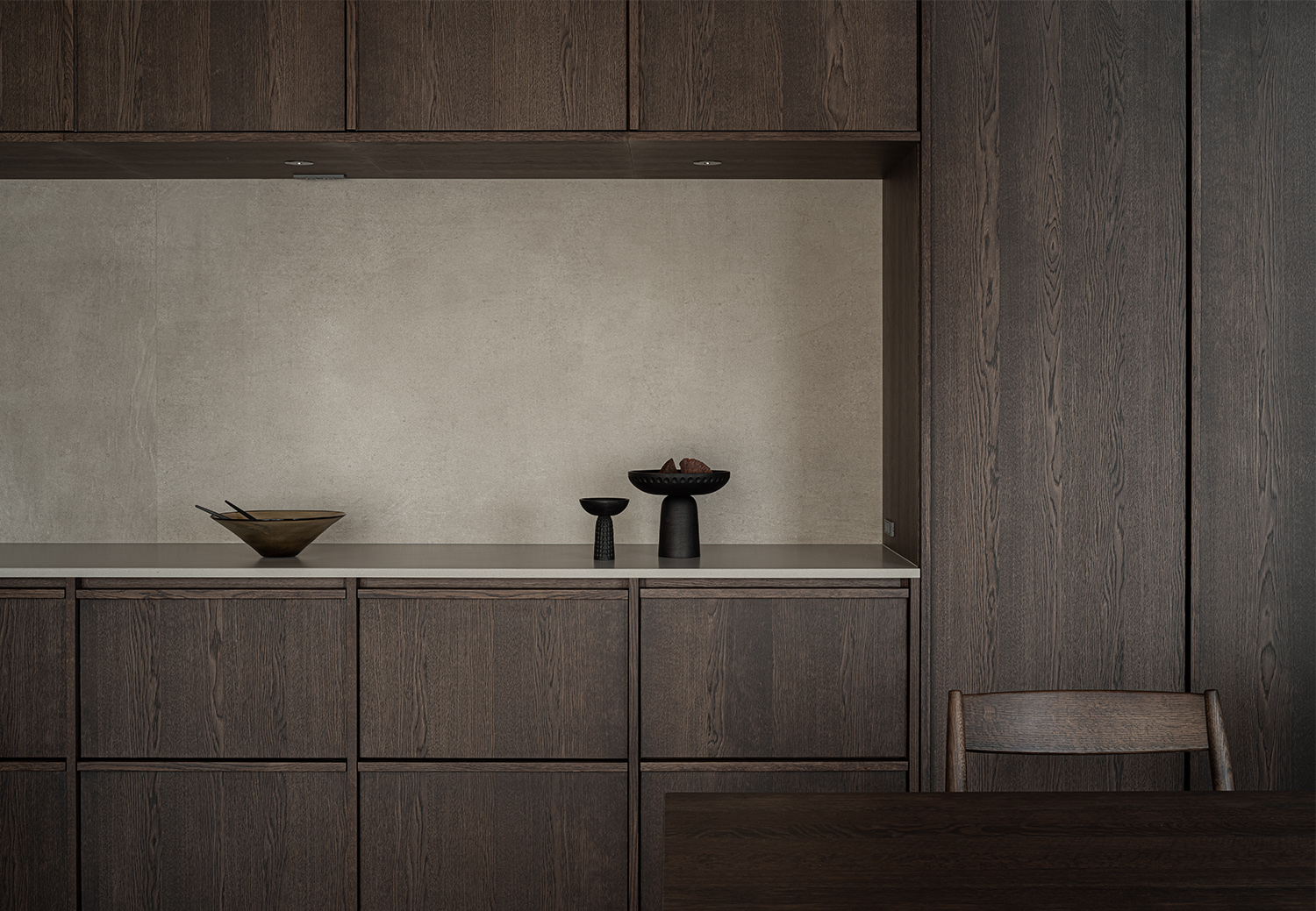 このインテリアデザインは、芦沢啓治建築設計事務所とノーム・アーキテクツのコラボレーションにより完成し、これまでのケースと同じく、日本と北欧のデザインの原則や美意識を融合しています。天然素材や落ち着いた色調を使用するという共通の理念がこのプロジェクトの基礎にあり、触り心地のよさや、ソフトミニマルで時代を超えた品質に重きを置いている点が特徴です。