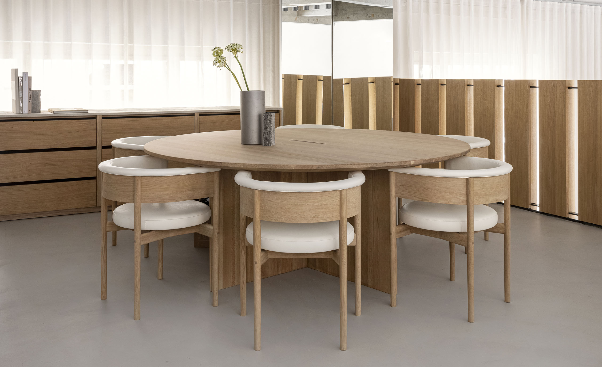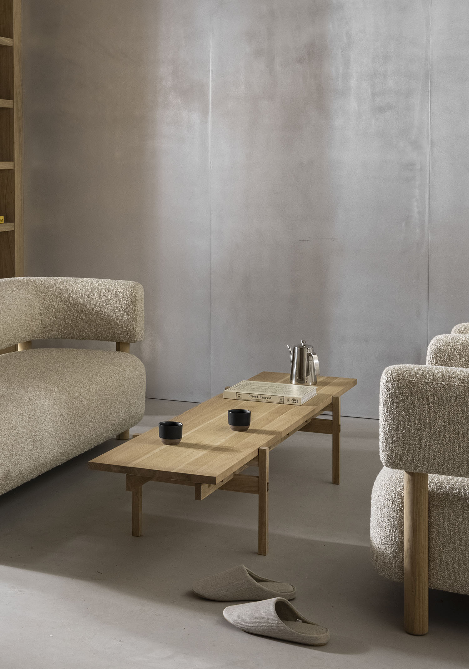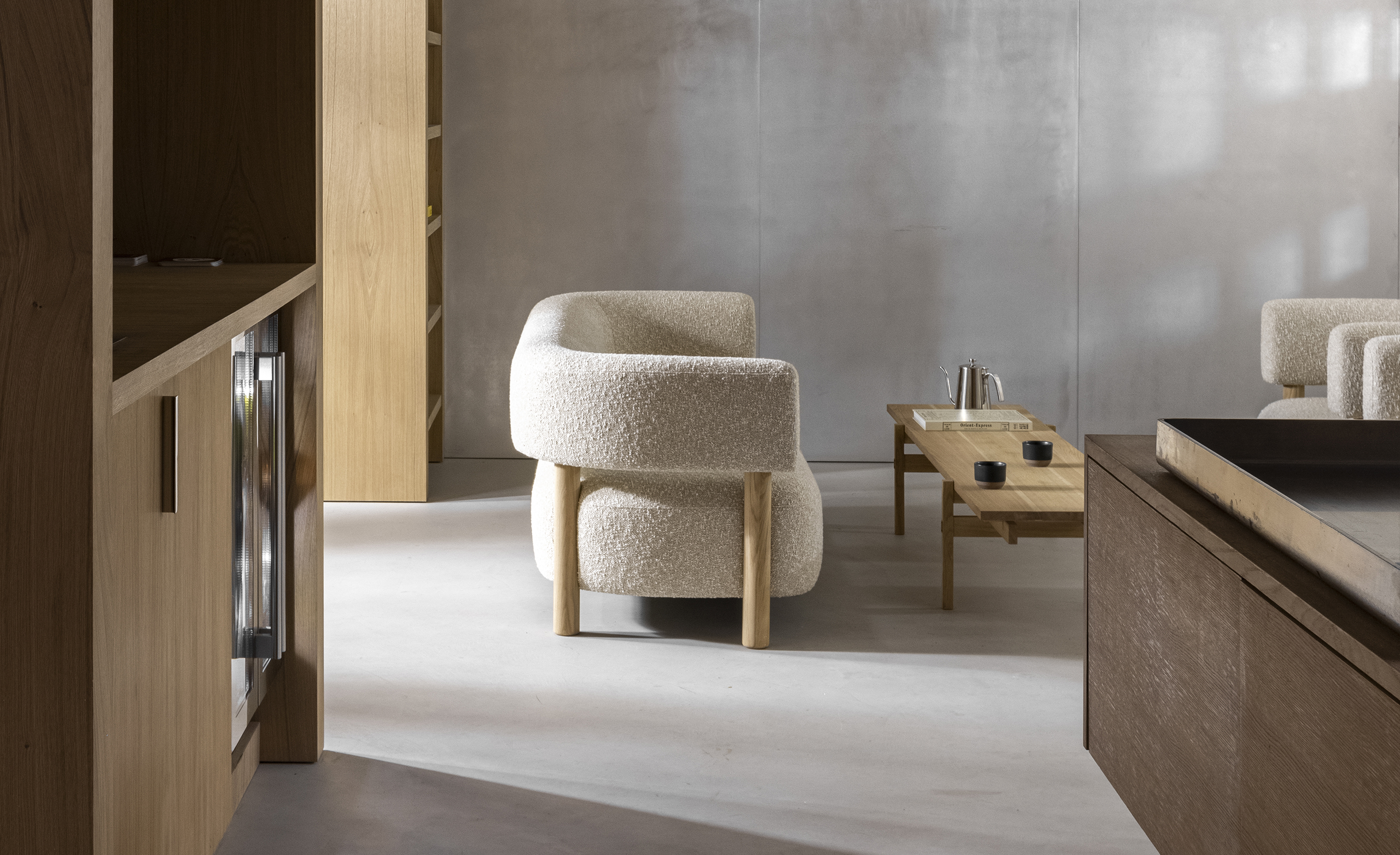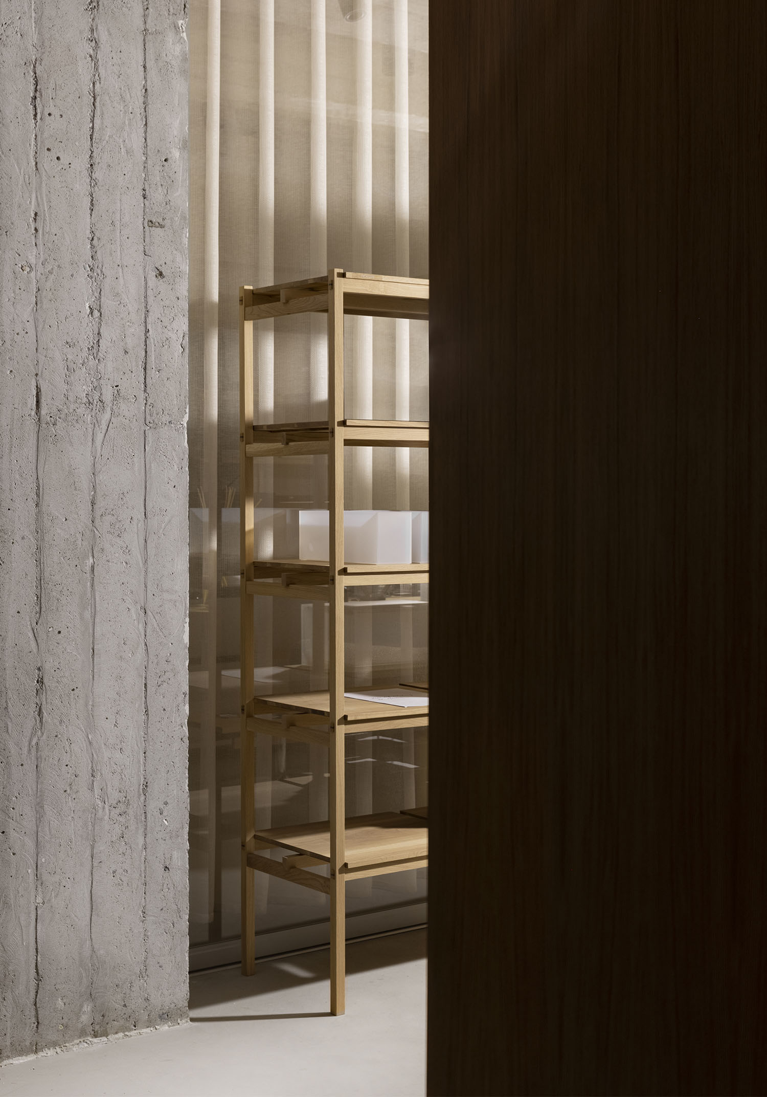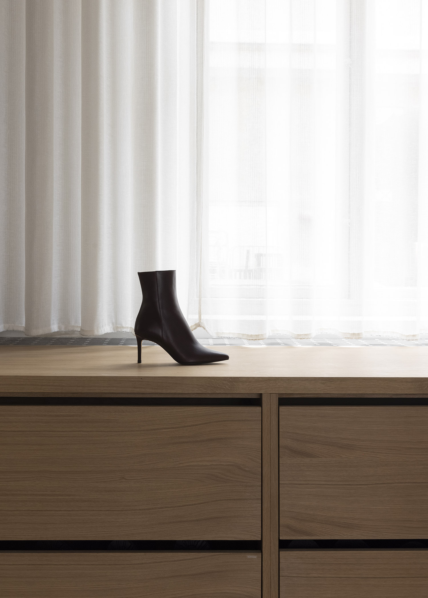 ノータベネシューストアコレクション は、コペンハーゲンの中心部に位置する、シューズブランド「Notabene」のフラッグシップストアに設えるためにデザインされました。味わい深い表情を持つビルの構造は、長きに渡りさまざまな使い方をされてきた歴史を伝えます。洗練された日本の家具製造技術が空間に入ることで、靴製造のプロセスの細やかさや精密さが強調されます。