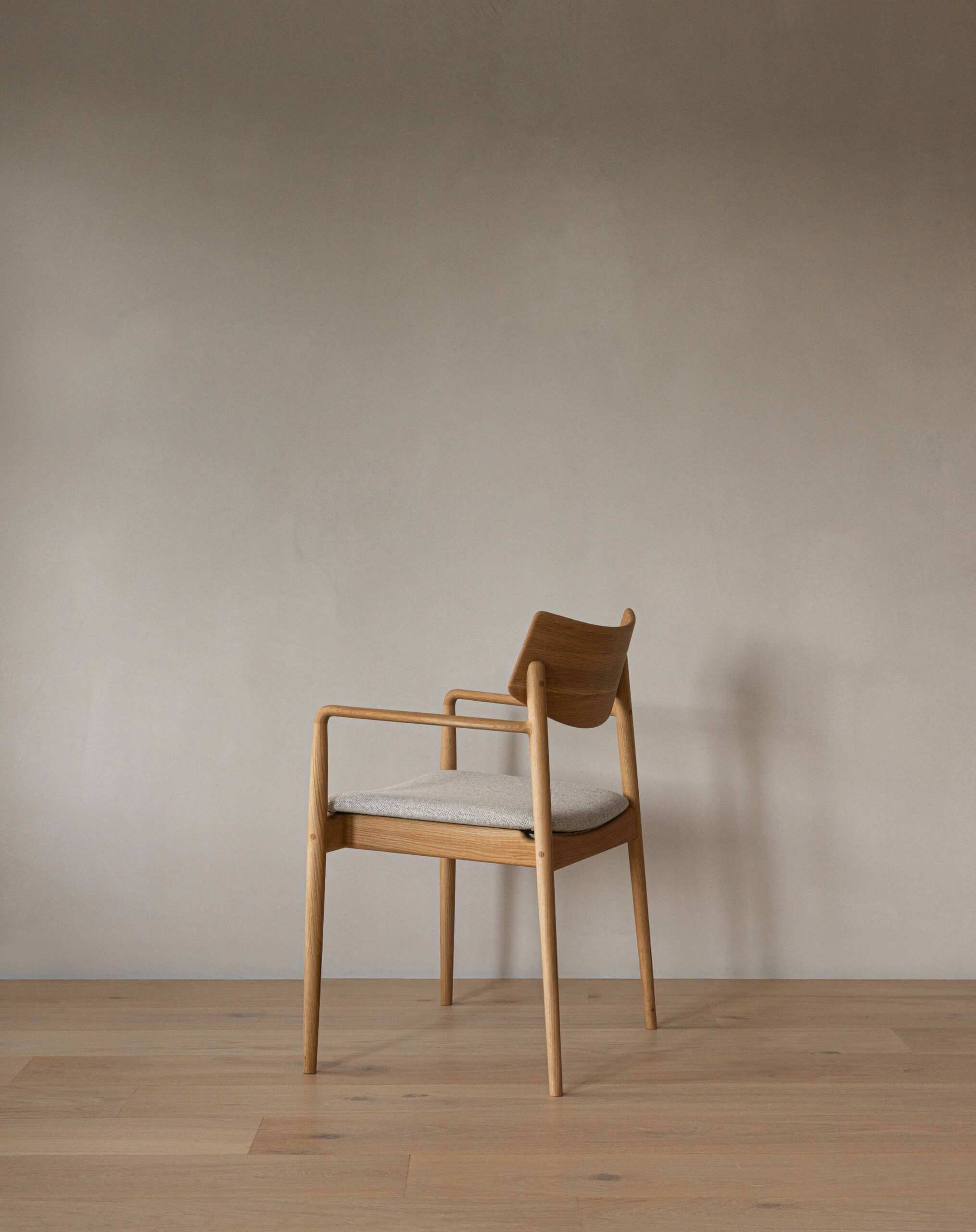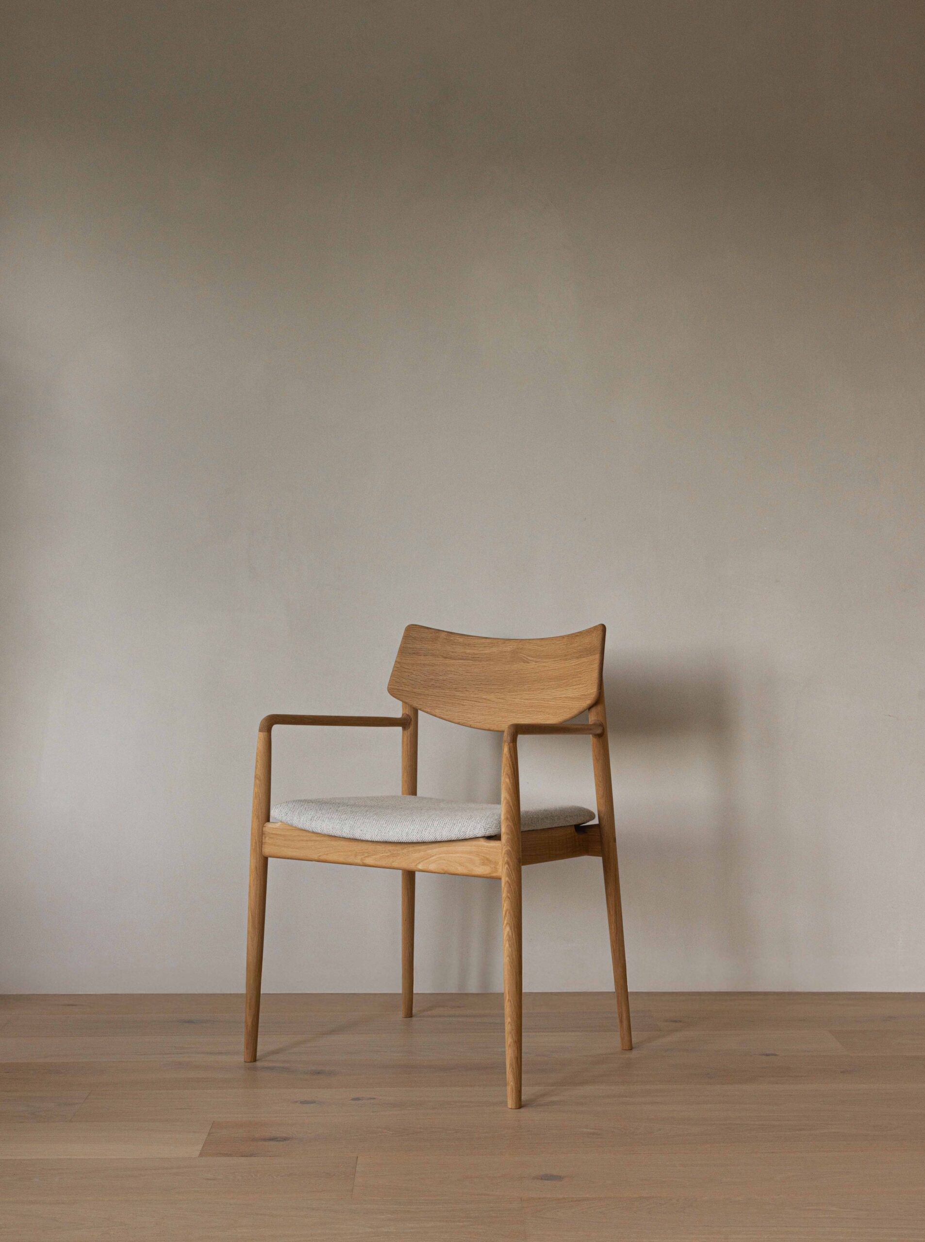 椅背由实木雕刻而成,带来一种轻盈柔和的印象,与座椅上的软包材料相得益彰。
