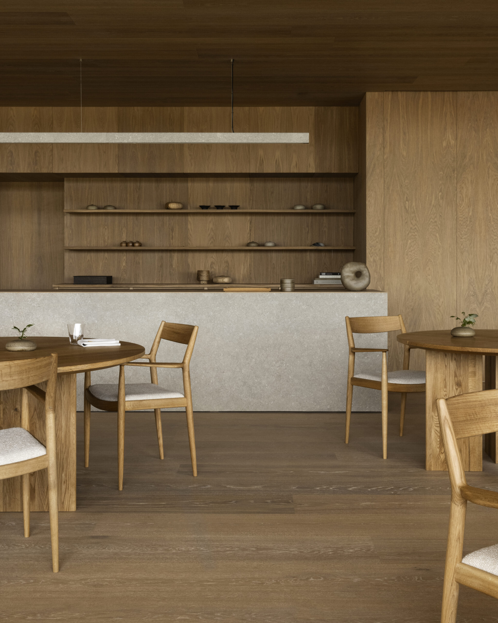 Restaurang ÄNG 系列摆放在瑞典米其林星级餐厅 ÄNG — 新建而成的现代化玻璃屋之中,毗邻当地葡萄园“Ästad”。专注于北欧风格的设计原则与宁静沉稳的材料,本款定制室内设计旨在探索日式特色与北欧风尚的相似之处。