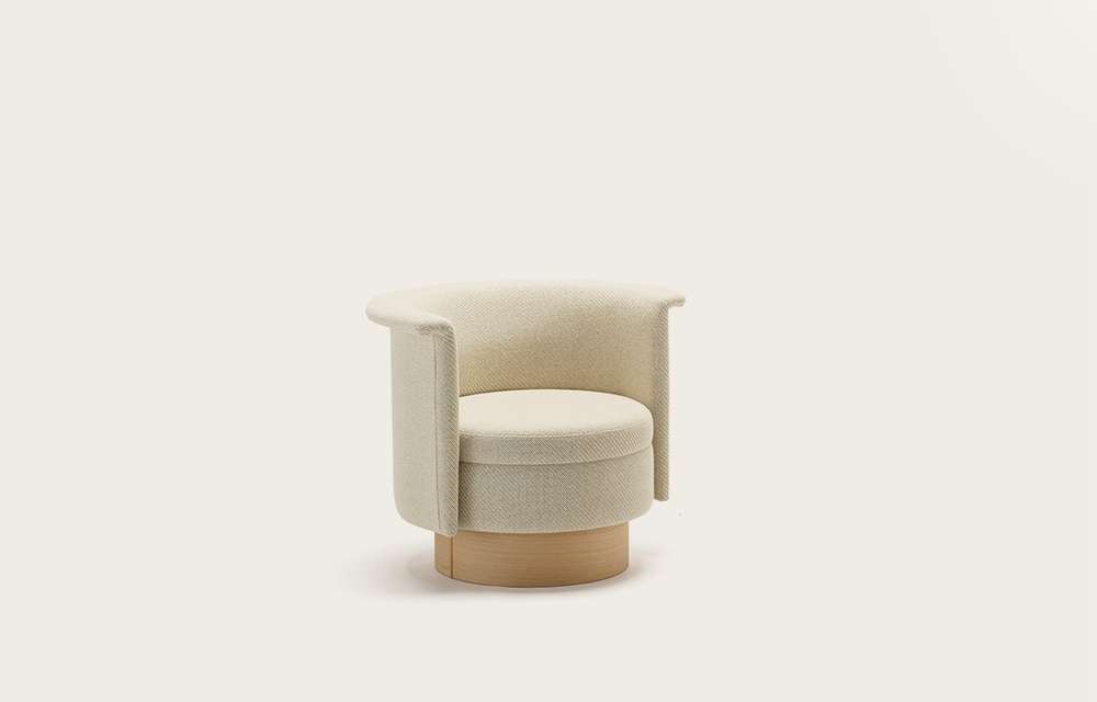 设计为东京具代表性的地区——新宿的豪华饭店「BELLUSTAR TOKYO, A Pan Pacific Hotel」的N-SW01 | 旋转椅,散发出极简而高雅的质感。具工艺感的圆形底座与高质量的面料材质,不仅带来包覆般的支撑感与舒适性,还能确保充分的隐私。因椅子以中心轴为中心进行旋转,不使用时就会不着痕迹地恢复到原本的角度。
