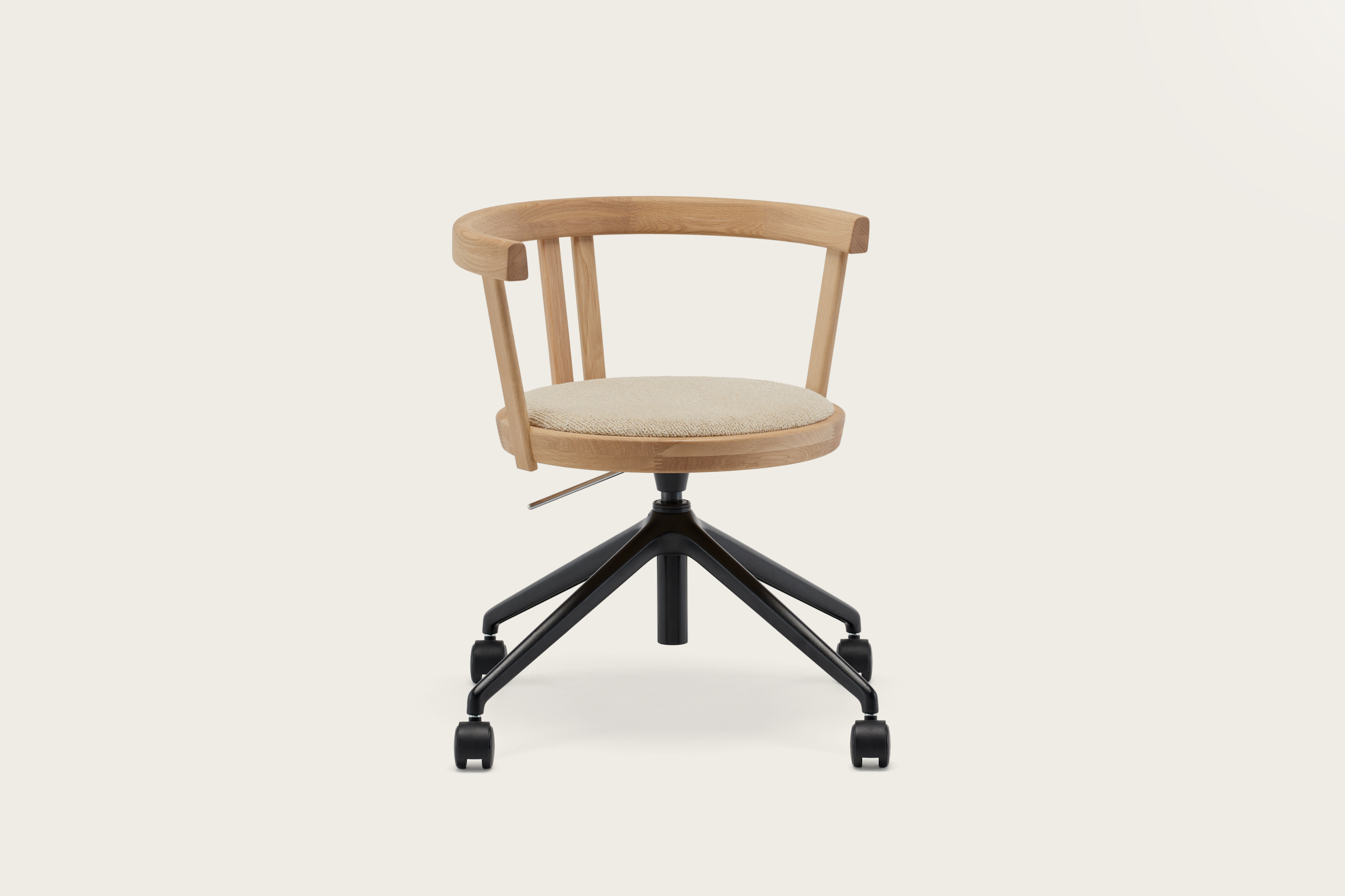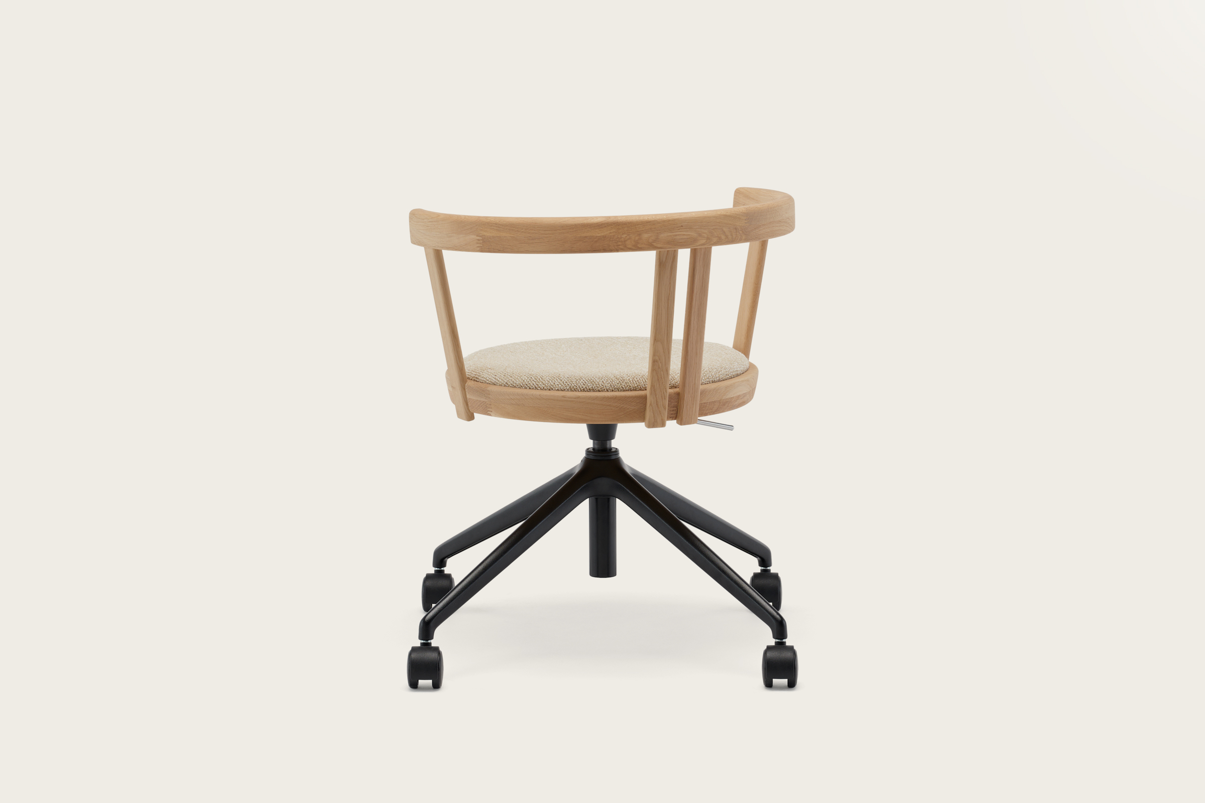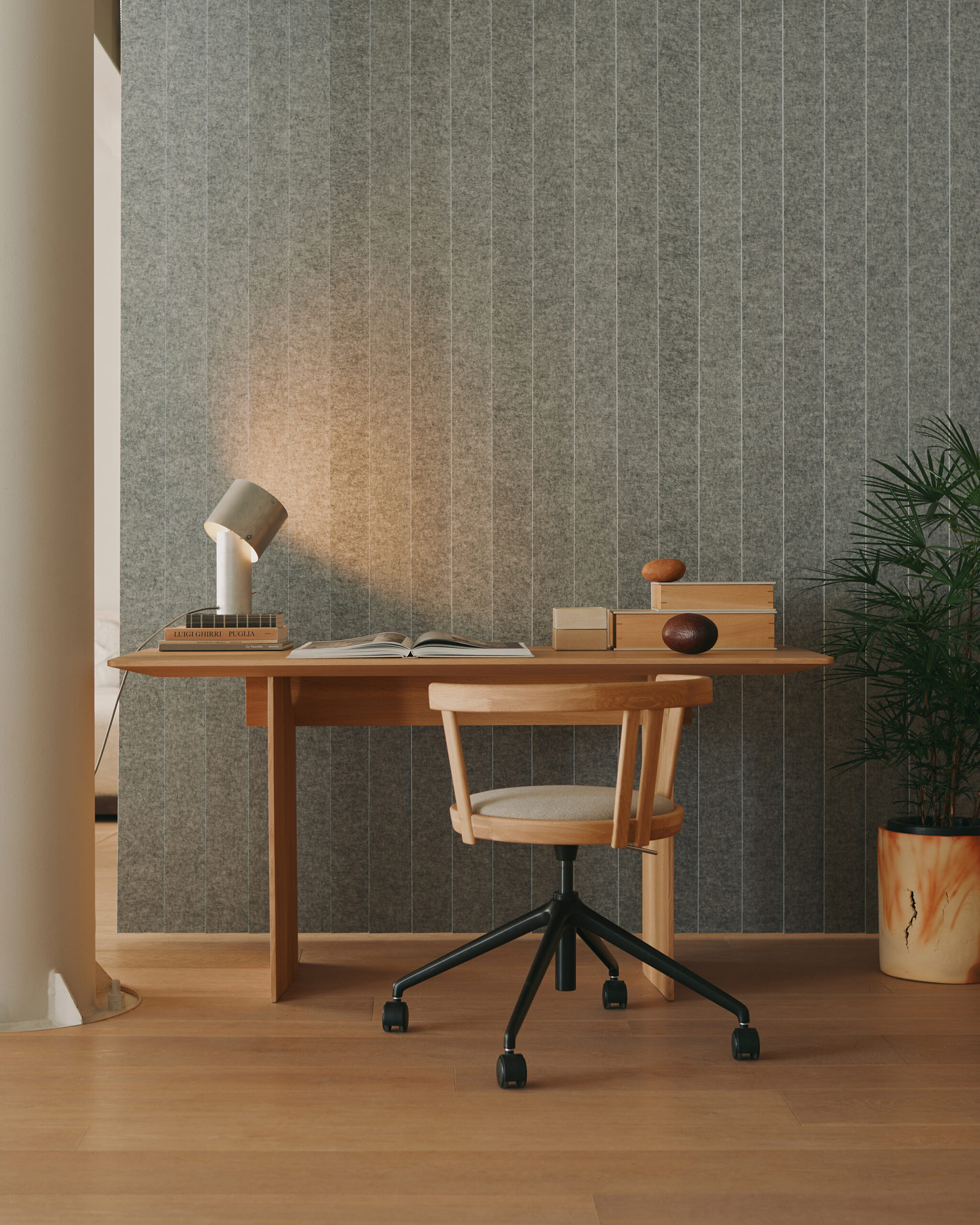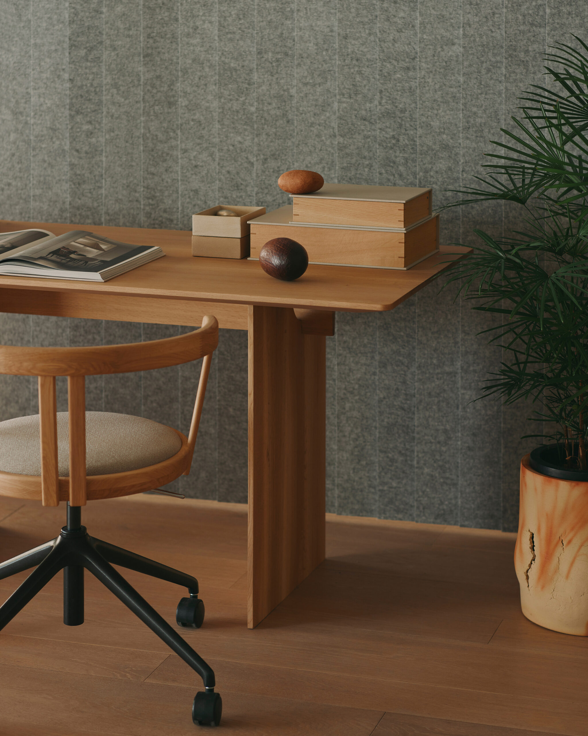 Defined by restraint and refinement, the N-TC01 | Task Chair embodies the sculptural clarity of the Karimoku Case collection. Designed as a quiet companion, it supports focused work and moments of reflection alike. A round, cushioned seat and gently curved backrest offer balanced comfort, while the height-adjustable base and subtle castors provide flexibility throughout the workday.